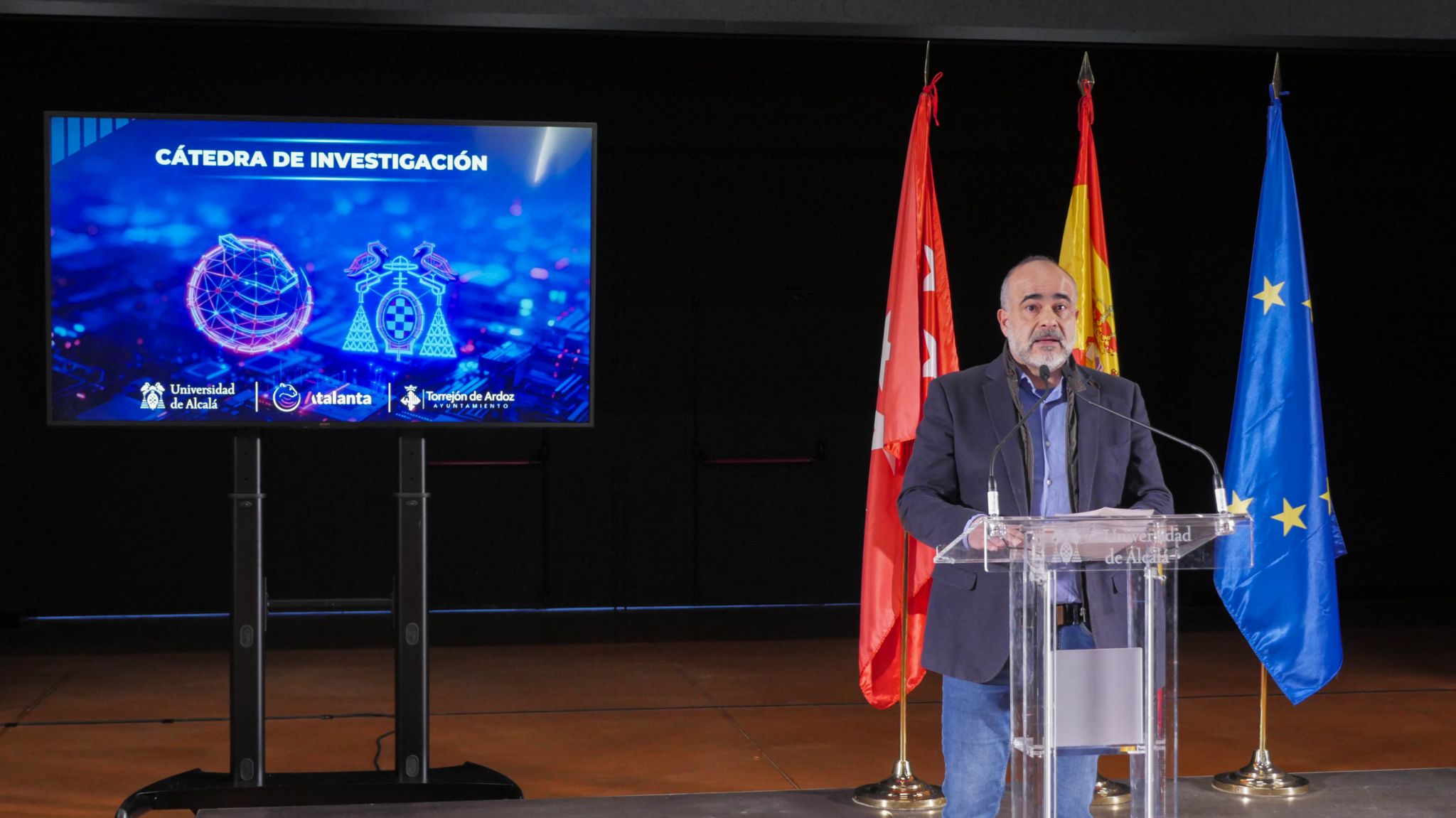 El evento de inauguración, celebrado en el nuevo Campus Torrejón de la Universidad de Alcalá, contó con la presencia del alcalde de Torrejón de Ardoz, Alejandro Navarro Prieto, el Dr. Manuel Sánchez Rubio, director de la Cátedra, junto con el Dr. Roberto Barchino Plata, codirector de la Cátedra, Isaac Gutiérrez, CEO de Atalanta, profesores investigadores y los dos primeros estudiantes torrejoneros becados que formarán parte del equipo de investigación.